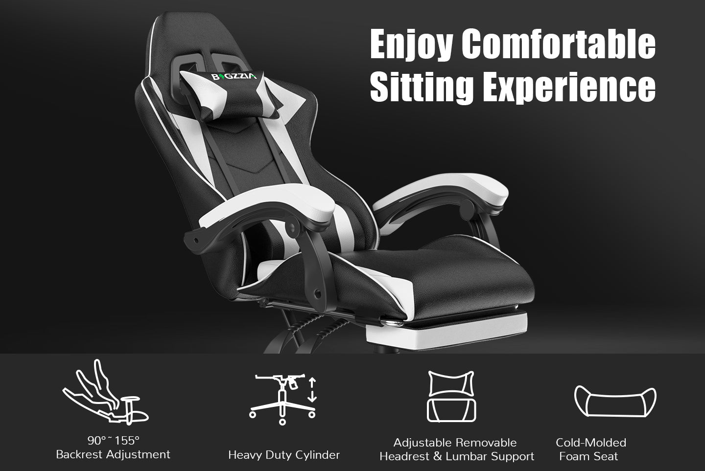 Constructed with soft PU leather and cold-molded memory foam to give a premium look and enhanced sitting comfort. Special features of lumbar support and footrest help to relax your body greatly and achieve a more comfortable sleeping position.