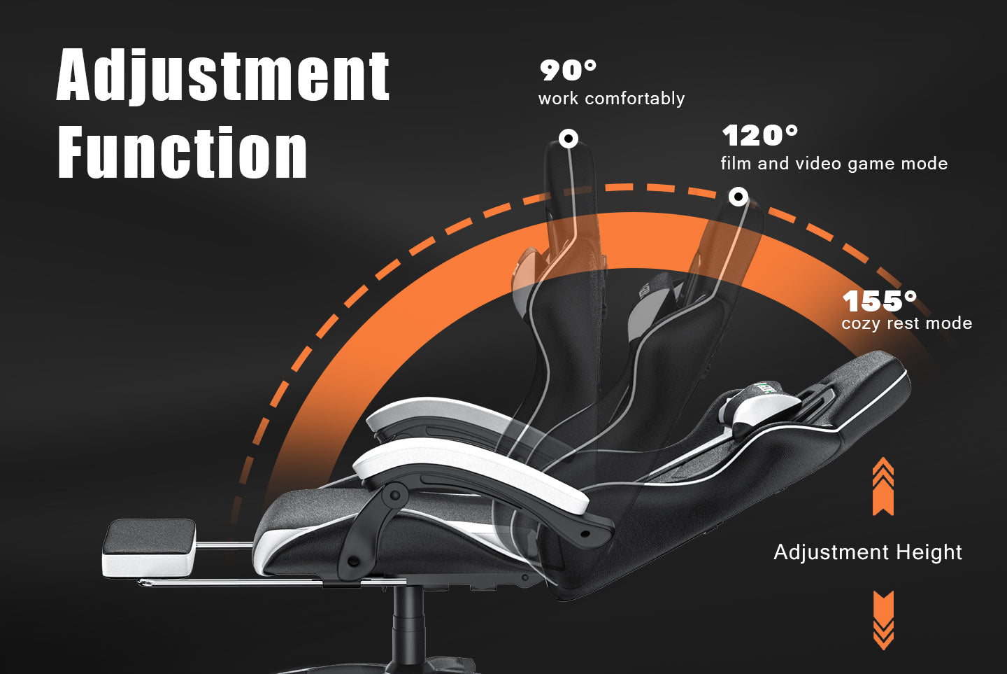 90°-155° Adjustable Reclining makes it easily switch between sitting and lying down, ideal for working, watching TV or taking a nap. Adjustments for headrest and height adapt to your different needs.