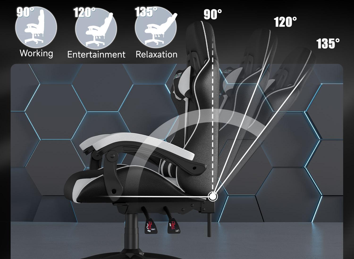 Adjust the backrest with your body weight, easily lean back into the seat and lie back as far as you can with up to 135 degrees of adjustable recline for the most comfortable relaxing position.