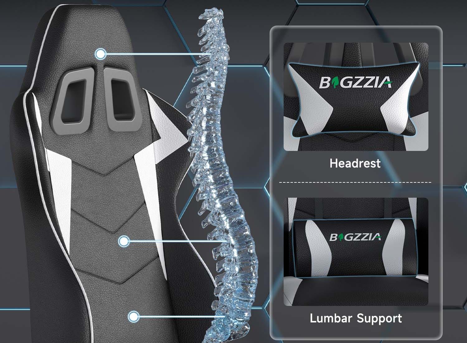 The gaming chair is made of soft and skin-friendly PU leather, which is resistant to scratches, stains, peeling and cracking, and breathable as well. Carefully designed for supporting your back, neck and arms, it allows you to enjoy a comfortable sitting experience.