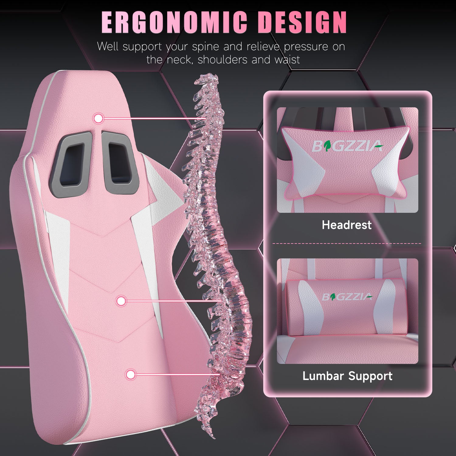 The gaming chair is made of soft and skin-friendly PU leather, which is resistant to scratches, stains, peeling and cracking, and breathable as well. Carefully designed for supporting your back, neck and arms, it allows you to enjoy a comfortable sitting experience.