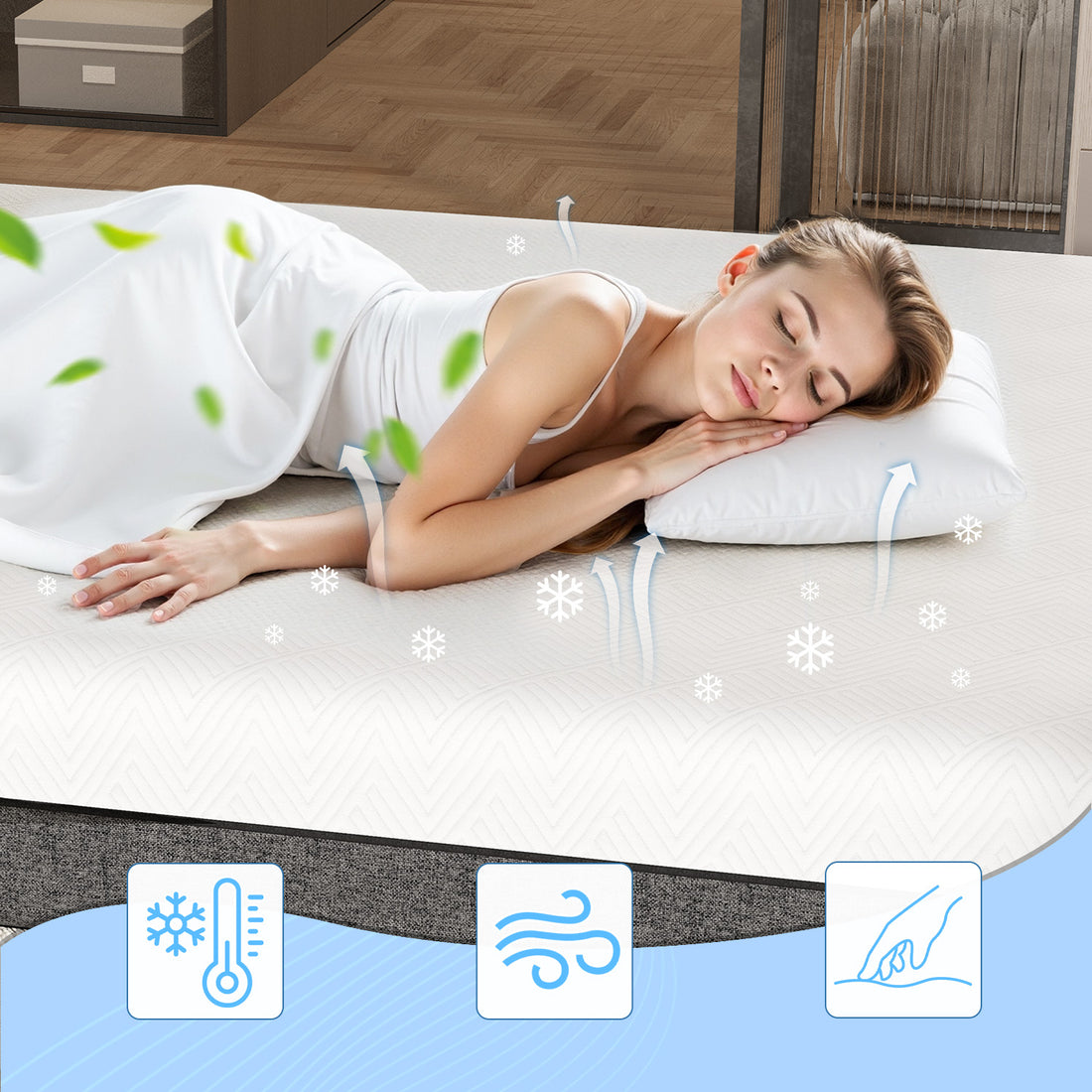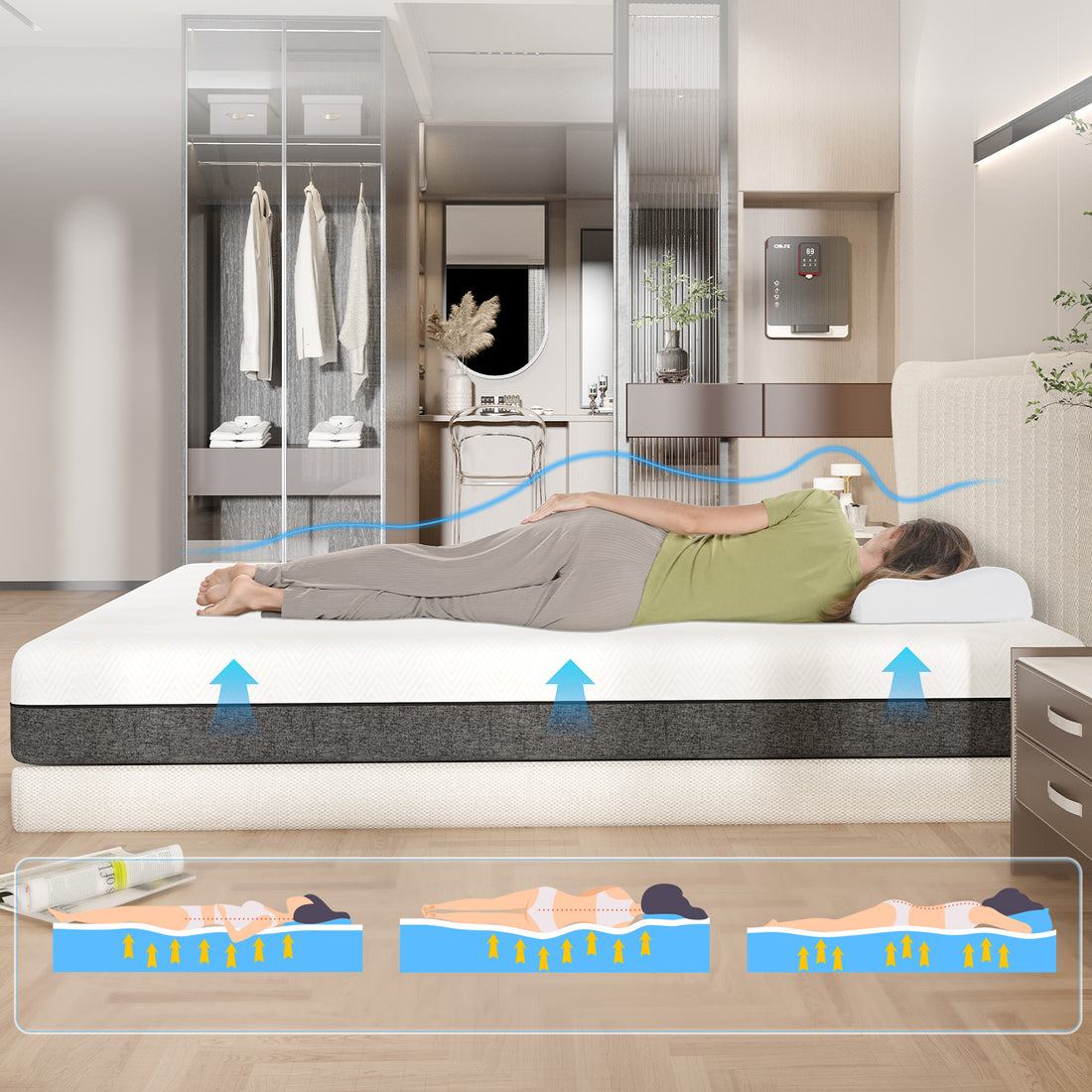 Specifically designed for side sleeper, back sleeper, or stomach sleeper, the mattress allows you to flexibly match various sleeping positions to achieve "ZERO" restless sleep.
